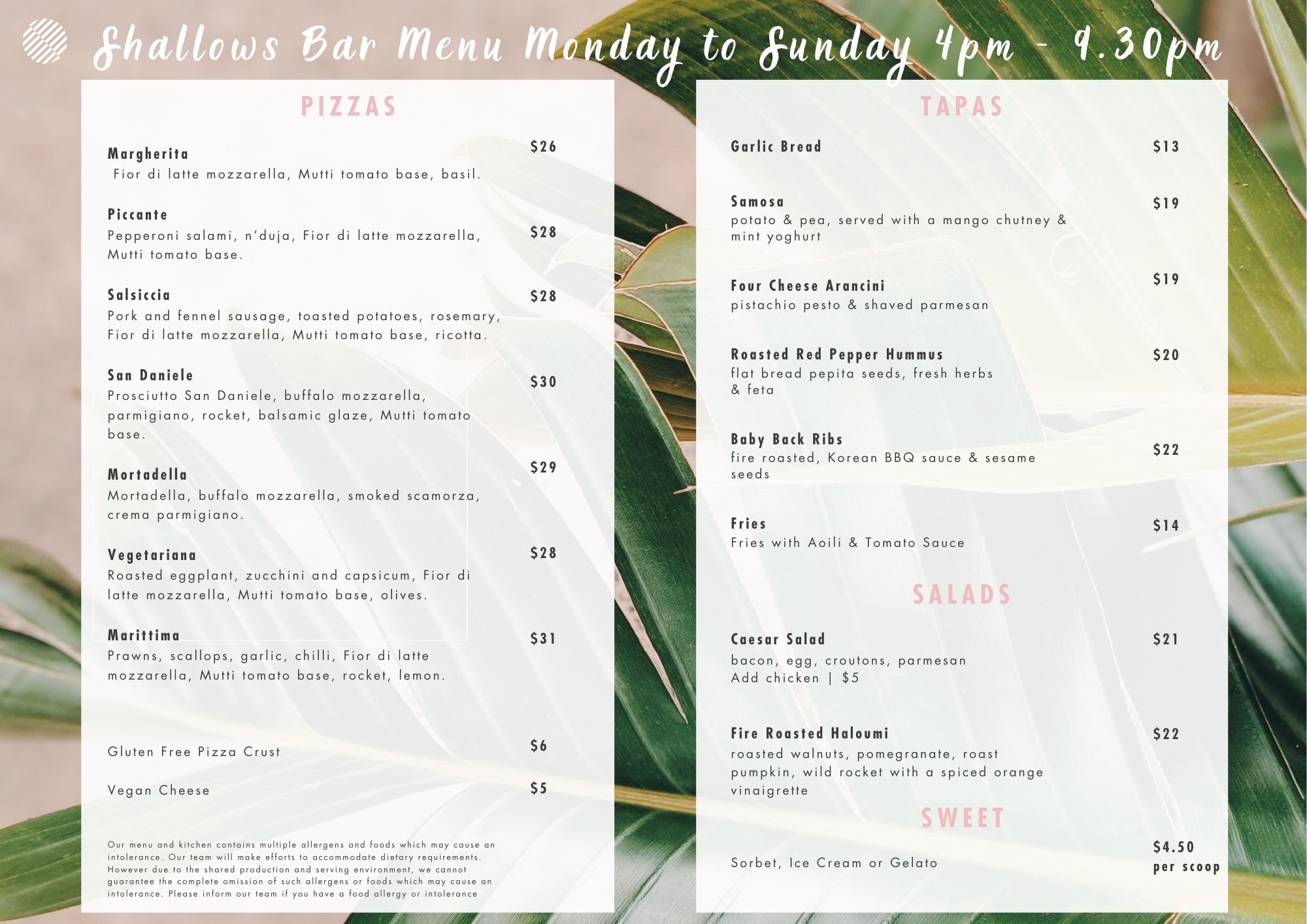 No bookings are required at Shallows Bar and we welcome customers from 7.00am until 9.30pm.