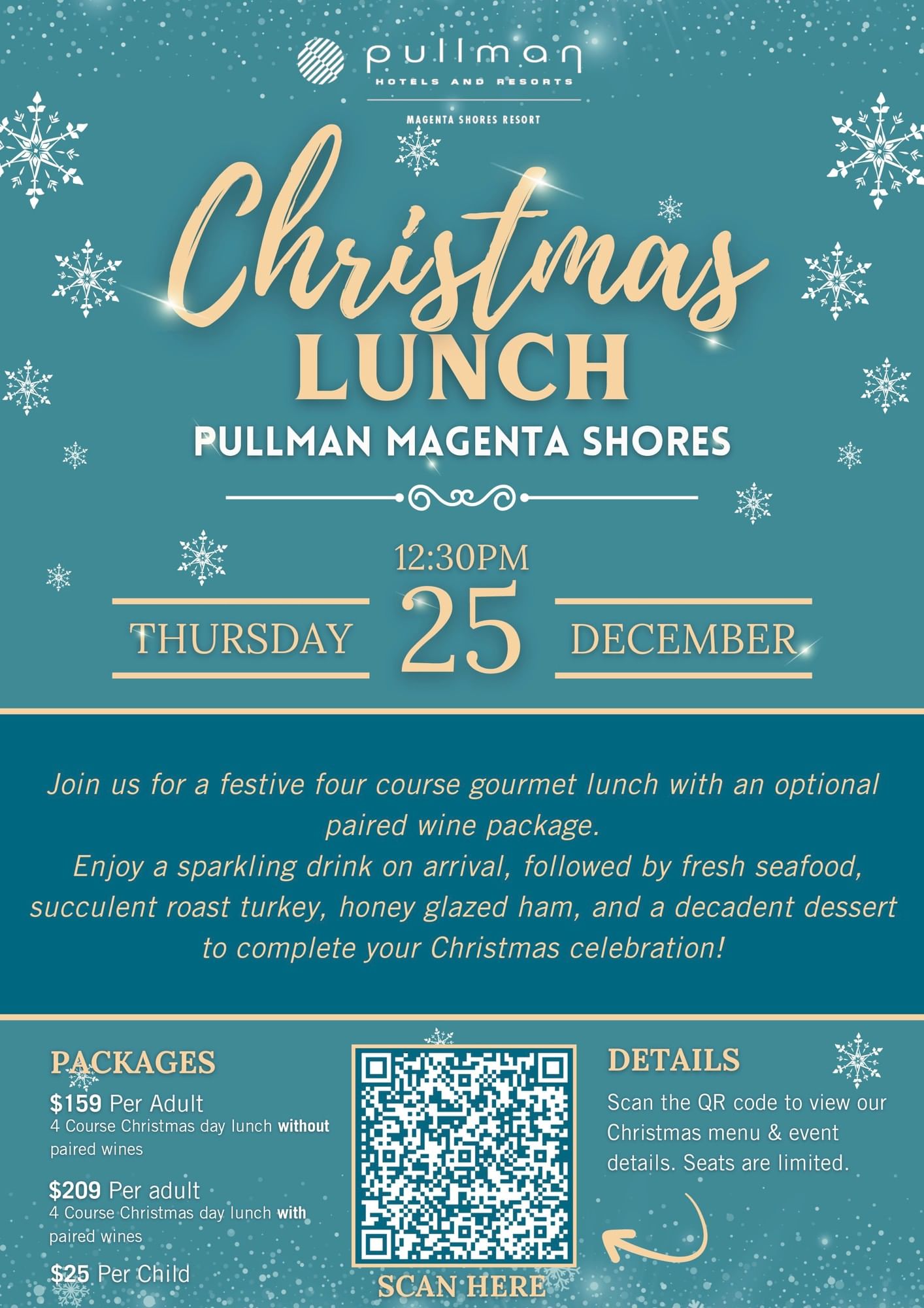 Join us Pullman Magenta Shores Resort this Christmas for an unforgettable Christmas Lunch Feast.